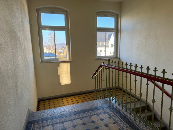 Großes, helles Treppenhaus zur Wohnung im 1.OG